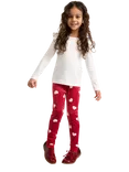 Kids' Velour Heart Print Leggings, Dark Dusty Red