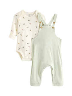 Baby Bodysuit and Dungarees Set, Light Dusty Green