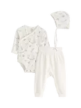 Baby 3 Piece Bodysuit, Joggers & Hat Set, Light Dusty White