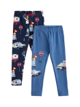 Kids' Cotton Leggings, Pack of 2, Light Dusty Blue