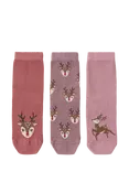 Kids' Reindeer Anti Slip Socks, Pack of 3, Light Dusty Pink