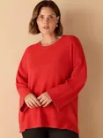 Curve Contrast Stitch Crew Neck Jumper, Red