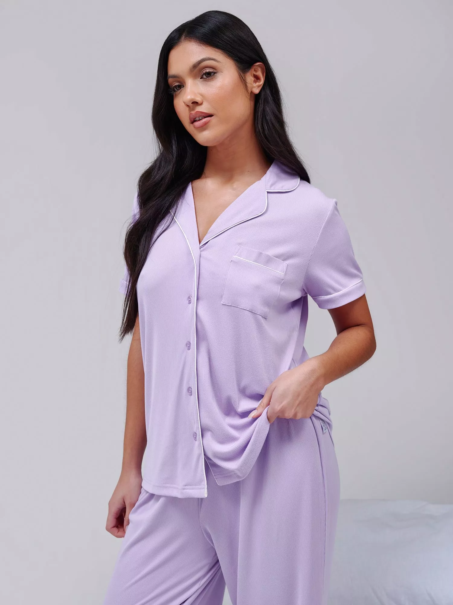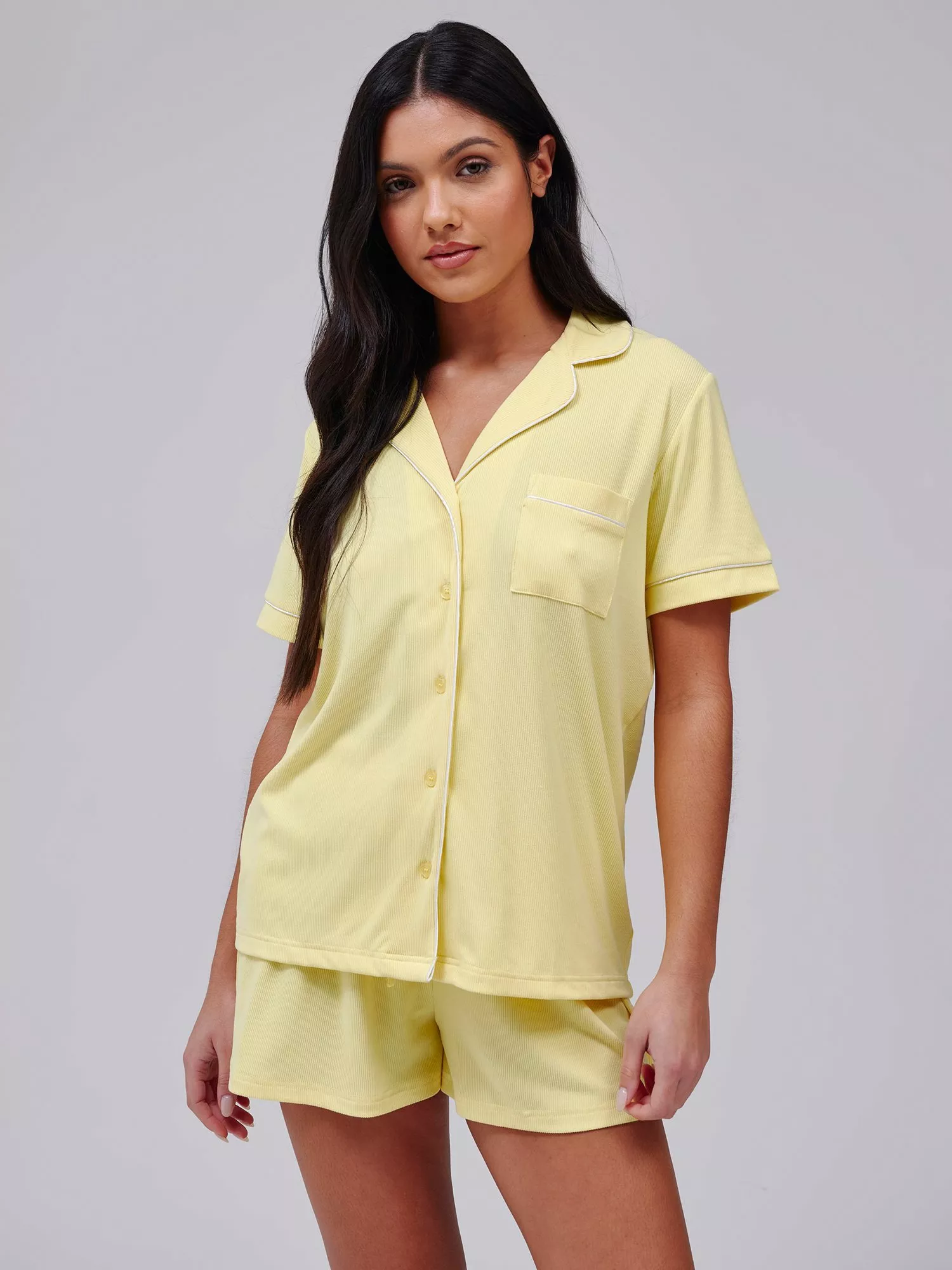 LoungeableRibbed Jersey Button Down Short Pyjama Set£28.00Lilac is availableYellow is available+ More colours available