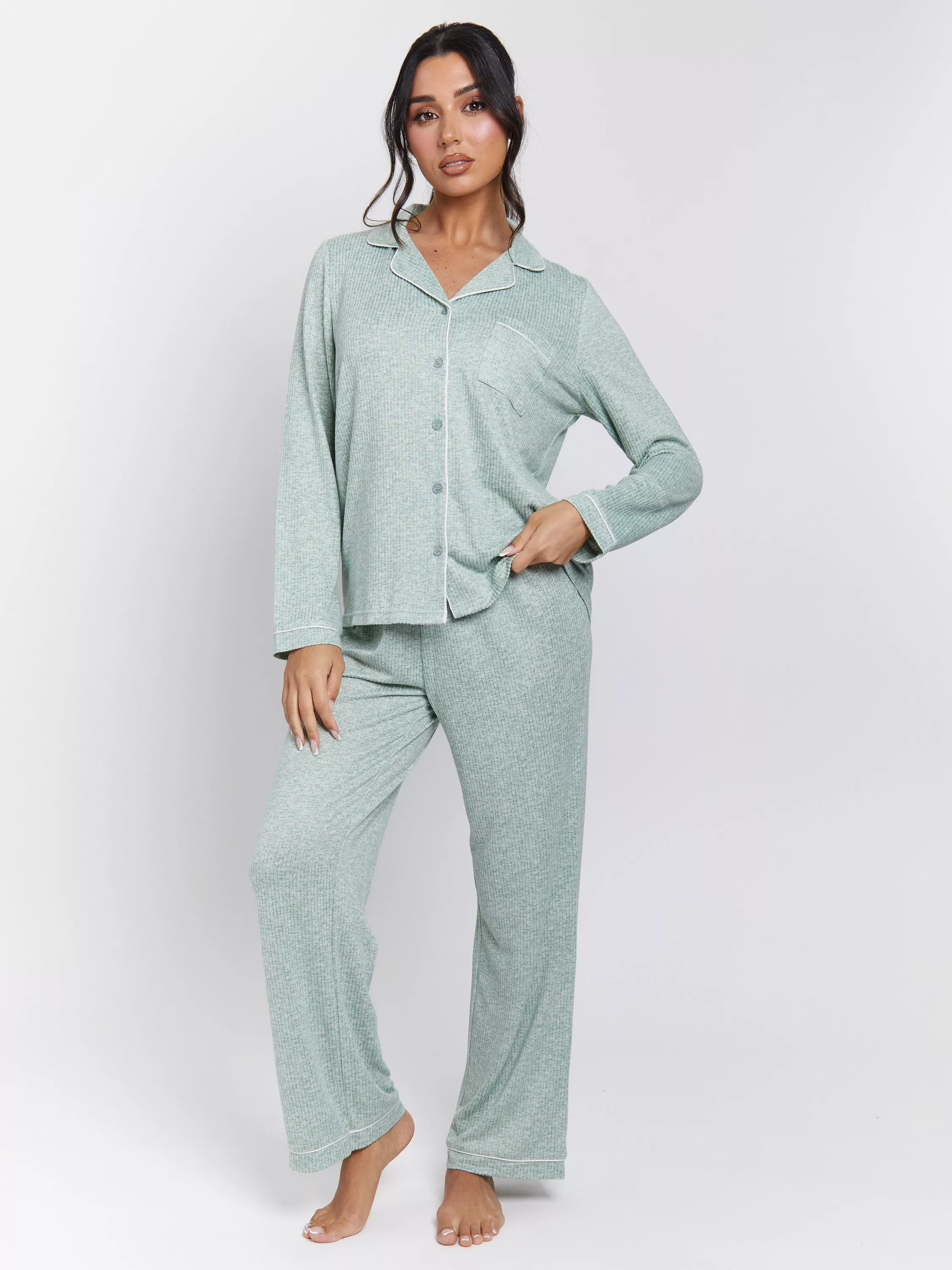 LoungeableMarl Rib Pyjama Set£34.00Charcoal Grey is availablePink is availableGreen is unavailableTaupe is unavailable+ More colours available