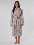 Leopard Print Shawl Neck Dressing Gown, Taupe