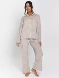 Leopard Super Soft Velour Ribbed Pyjamas, Beige