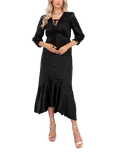 Animal Print Jacquard Tie Neck Dress, Black