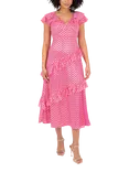 Foil Print Ruffle Midaxi Dress, Fuchsia / Gold