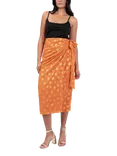Metallic Swirl Wrap Midi Skirt, Orange/ Gold