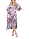 Short Puff Sleeve Speckle Print Midi Dress, Purple