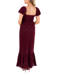 Lovedrobe Floral Lace Velvet Midaxi Dress, Burgundy