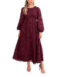 Floral Burnout Keyhole Back Midaxi Dress, Burgundy