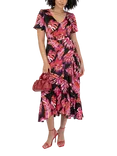 Tropical Floral Waterfall Ruffle Midaxi Dress, Black/Multi
