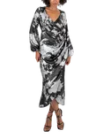 Abstract Faux Wrap Midaxi Dress, Black/Silver