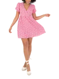 Short Puff Sleeve Embroidered Cotton Mini Dress, Pink/White