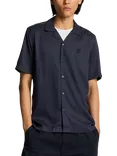 Geometric Motif Revere Shirt, Dark Navy