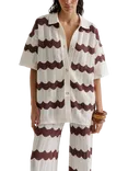 Alana Chevron Stripe Knit Shirt, Brown/White