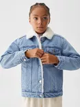 Email when available, Mango Kids' Lisa Shearling Lined Denim Jacket, Open BlueMango Kids' Lisa Shearling Lined Denim Jacket, Open Blue£35.99 – £39.99