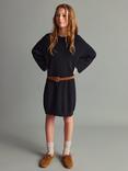 Kids' Saski Knitted Cotton Midi Dress, Navy