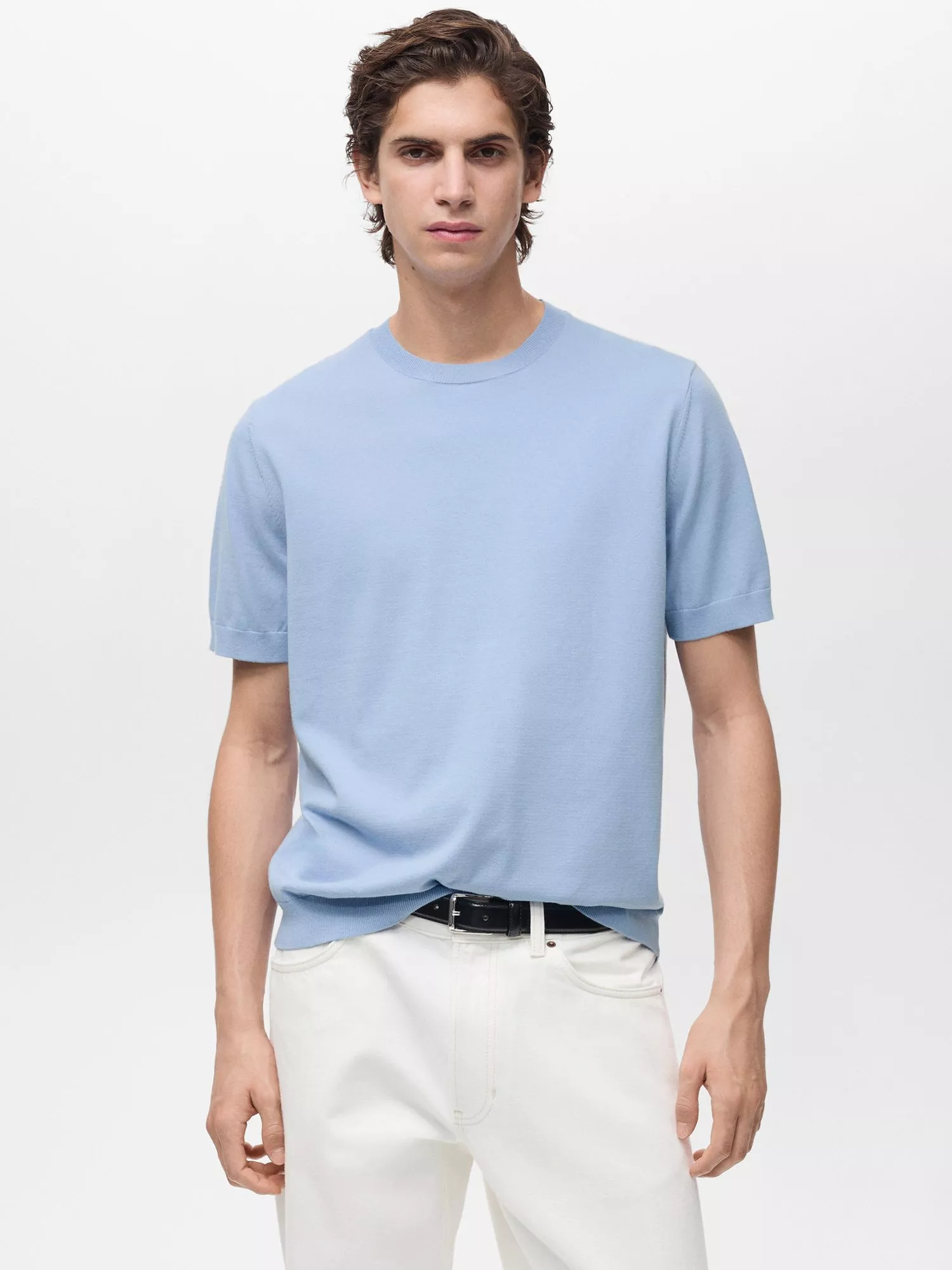 Mango Arraona Cotton Regular Fit Tee, Dark Brown
