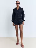 Mango Livia Fitted Denim Jacket, Dark Blue