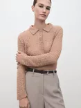 Mango Nuez Open Knit Polo Knit Top, Medium Brown