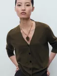 Mango Lucca V-Neck Cardigan, Khaki