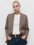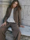 Mango Katy Wide Leg Check Trousers, Medium Brown