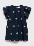Email when available, Mango Kids' Lilia Cotton Blend Short Sleeved Embroidered Dress, NavyMango Kids' Lilia Cotton Blend Short Sleeved Embroidered Dress, Navy£25.99