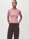 Mango Tomaset Rib Knit Top, Pastel Pink