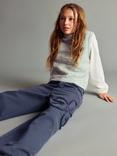 Email when available, Mango Kids' Suiz Embroidered Hem Trousers, NavyMango Kids' Suiz Embroidered Hem Trousers, Navy£19.99