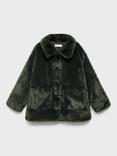 Mango Kids' Faux Fur Coat, Medium Green