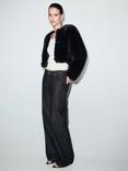 Mango Boleta Faux Fur Cropped Jacket, Black