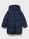 Mango Kids' Annab Quilted Hooded Jacket, Navy