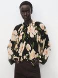 Mango Salty Floral Midi Dress, Black