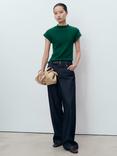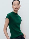 Mango Dumin Short Sleeve Knit Top, Dark Green