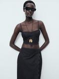 Mango Luisa Cotton Embroidered Crop Top, Black