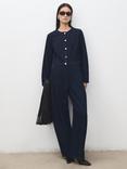 Mango Cally Strapless Denim Jumpsuit, Dark Blue