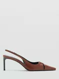 Mango Camila Slingback Kitten Heel Sandals, Mid Brown