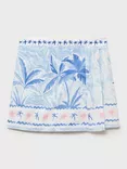 Kids' Phiphi Cotton A-Line Palm Print Mini Skirt, Medium Blue