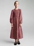 Email when available, Mango Kids' Pepita Shirred Long Sleeve Flared Dress, Dark Red/MultiMango Kids' Pepita Shirred Long Sleeve Flared Dress, Dark Red/Multi£32.99