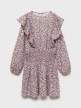 Mango Kids' Capri Flora Frill Dress, Light Pastel Purple