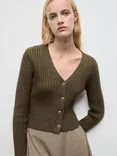 Mango Yuki V-Neck Ribbed Cardigan, Khaki