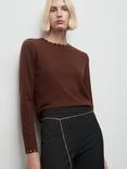 Mango Nuez Open Knit Polo Knit Top, Medium Brown