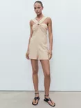 Cross Front Linen Rich Playsuit, Light Pastel Brown