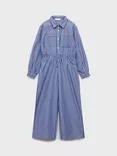 Mango Kids' Wendy Stripe Cotton Shirt Jumpsuit, Navy
