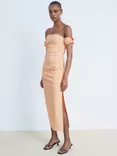 Peachy Strapless Midi Dress, Pastel Orange