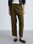 Mango Linen Drawstring Trousers, Medium Brown