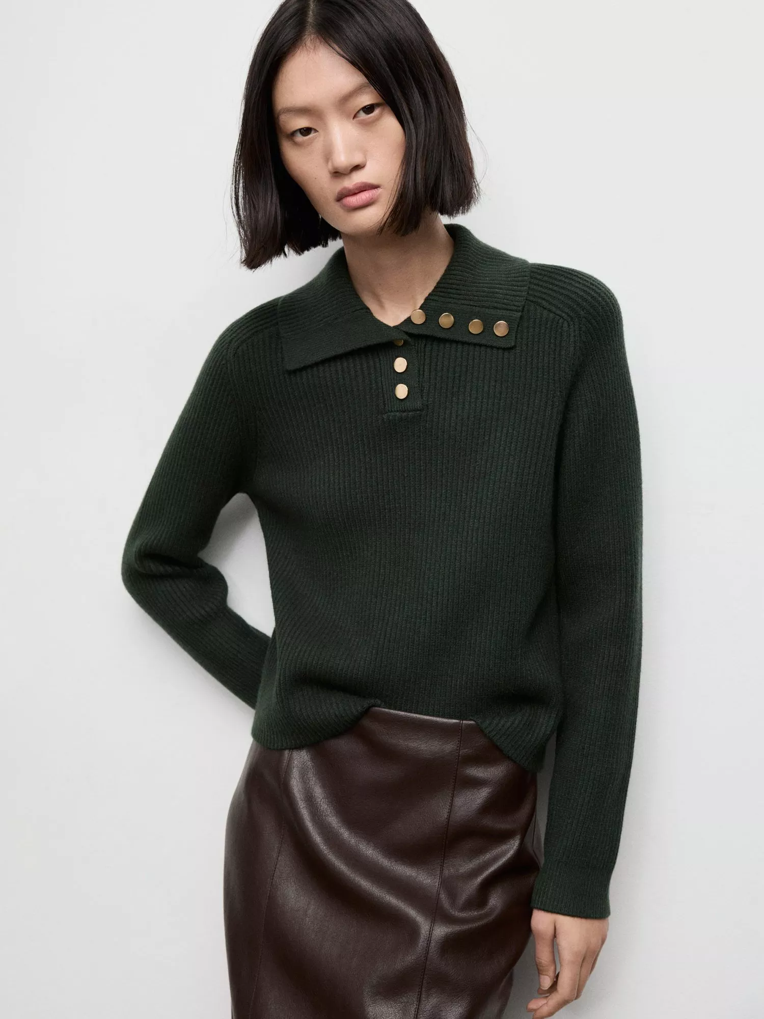 MangoBotori Ribbed Knit Button Neck Jumper, Navy£35.99£22.99Navy is availableDark Green is available+ More colours availableReduced To Clear