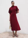 Vicky Bell Sleeve Midi Dress, Dark Red